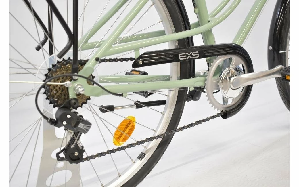 Le EXS Sunset 26″ son cadre acier, une transmission Shimano 7 Vitesses, ses roues en 26″, et ses freins V-bracke