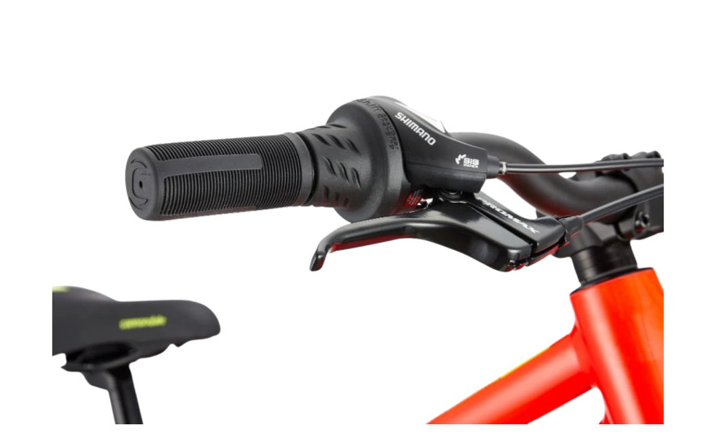 Le Cannondale Quick Sherpa avec son cadre en aluminium, une transmission Shimano 7 Vitesses, ses roues en 24″, et ses freins V-brake